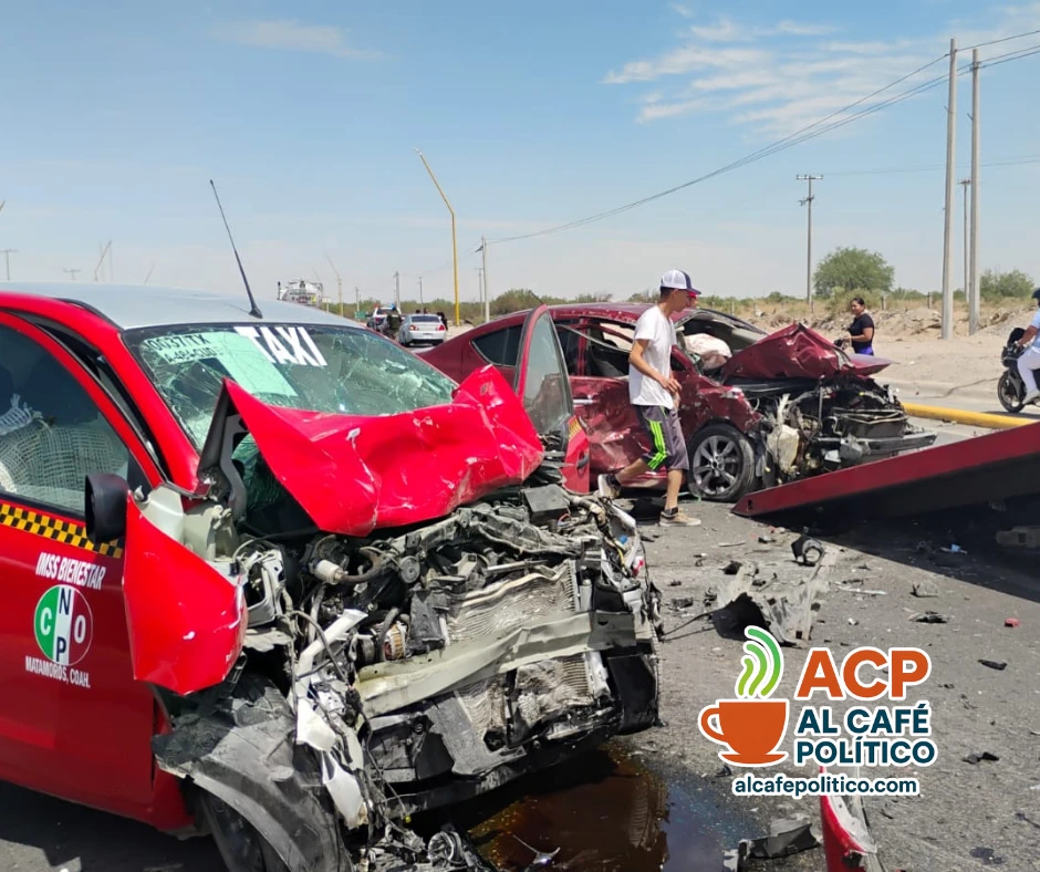 Matamoros, Coahuila.– Un accidente vial entre un taxi y un vehículo particular encendió la alerta este día en la zona de Wet Laguna, con saldo preliminar de personas lesionadas y movilización inmediata de cuerpos de emergencia.