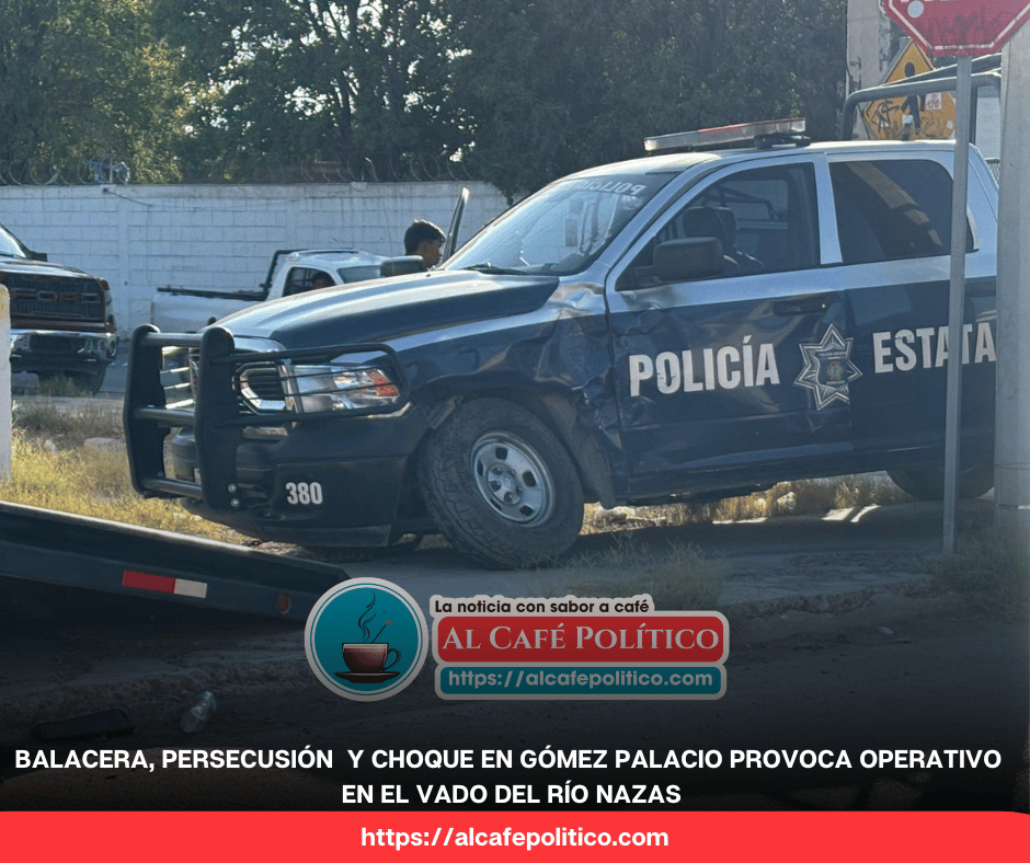 Balacera en el vado desata persecución y choque en Gómez Palacio