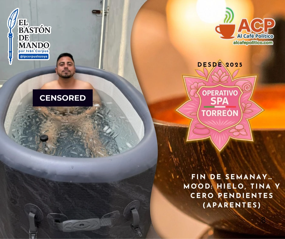 Y así, mientras el jefe policial Alfredo Flores disfruta de su Operativo Spa y se sumerge entre el hielo como si ahí estuviera la brújula del mando, sus elementos enfrentan la otra cara de la moneda: forcejeos con vecinas, jaloneos de cabello con una presunta menor y un video que les reventó la narrativa en segundos. Torreón no necesita baños fríos en redes; necesita liderazgo caliente en la calle. Porque cuando el comisario se relaja y la tropa se incendia, el único que gana es el algoritmo… no la ciudad. Y él, que ya juega a ser influencer, debería saberlo. O al menos sus asesores digitales.