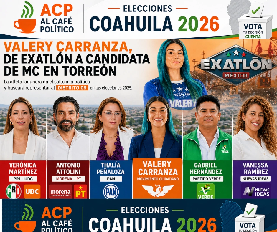 En el Distrito 09 de Torreón, la competencia se configura sobre una base electoral fragmentada, donde ninguna fuerza concentra dominio pleno. Verónica Martínez García (PRI–UDC), actual presidenta del PRI Torreón y diputada federal con licencia, se sostiene en una estructura partidista con capacidad de movilización. Frente a ella, Antonio Attolini Murra (Morena–PT), diputado local en funciones, participa en el proceso con la intención de obtener el cargo por mayoría relativa, articulando su presencia a partir de posicionamiento mediático y plataformas digitales. En otro nivel competitivo, Thalía Peñaloza (PAN), exfuncionaria municipal, mantiene una base definida; mientras que Gabriel Hernández (PVEM), con antecedentes en entornos digitales vinculados a Morena, participa en un segmento que puede influir en escenarios de margen reducidoEn ese mismo espacio, Vanessa Ramírez (Nuevas Ideas) busca posicionarse dentro del electorado.La posible participación de Valery Carranza se ubica dentro de este bloque emergente. Su punto de partida es el reconocimiento público derivado de su exposición mediática, el cual deberá traducirse en estructura y operación territorial para incidir en la contienda.