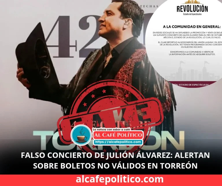 Torreón.- El Deportivo Algodoneros del Unión Laguna y el Estadio de la Revolución desmintieron categóricamente la promoción que circula en redes sociales sobre un supuesto concierto de Julión Álvarez programado para octubre en Torreón. En el comunicado oficial se precisa:…