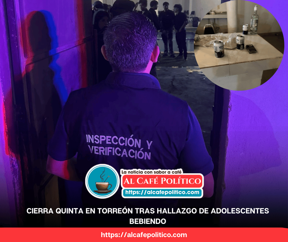 Torreón.-La Dirección de Inspección y Verificación Municipal, en coordinación con corporaciones de seguridad, clausuró una quinta sin denominación en la colonia Profesionistas tras detectar que en el lugar se encontraban menores de edad consumiendo bebidas alcohólicas, además de operar sin licencia de funcionamiento ni permiso para la venta de alcohol.