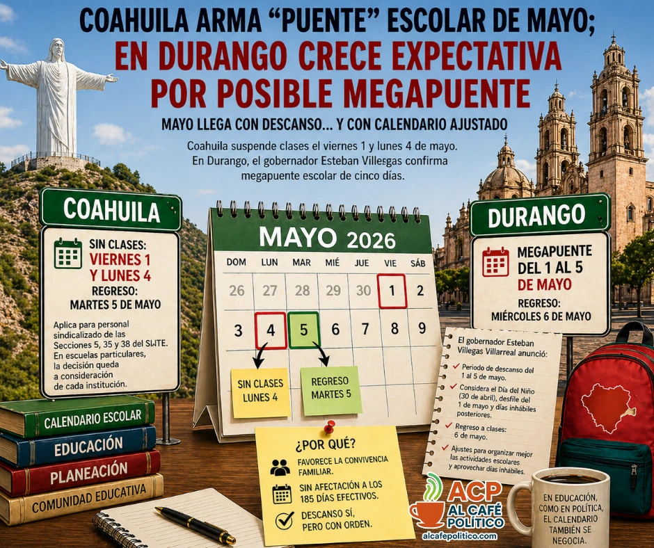 Coahuila ajusta… Durango amplía. Uno arma puente; el otro, megapuente. Al final, el calendario escolar confirma lo de siempre: cuando las fechas se alinean, el descanso también se negocia.