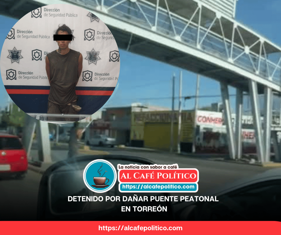 Torreón. – La Dirección de Seguridad Pública Municipal informó sobre la detención de un hombre acusado de causar daños a la infraestructura urbana en un puente peatonal ubicado sobre el bulevar Torreón-Matamoros y calle Turín.