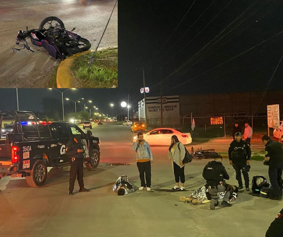 Torreón.— La noche del domingo, alrededor de las 22:00 horas, dos jóvenes quedaron tendidos sobre la carpeta asfáltica luego de caer de una motocicleta en movimiento sobre el bulevar Juan Pablo II, a la altura de la carretera al Aeropuerto, metros antes de llegar al Monumento al Campesino.