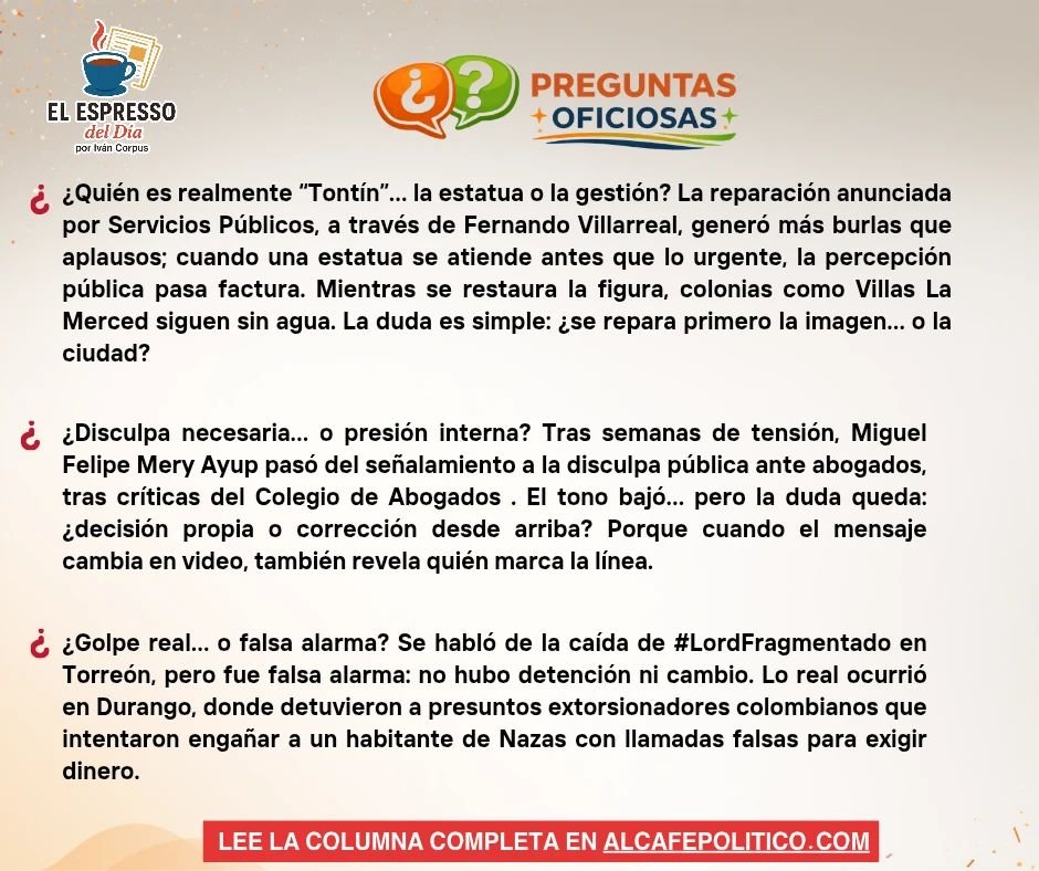 Por unas horas se creyó que ahora sí habría consecuencias en Torreón y que el jefe de Comunicación Social, #LordFragmentado, había caído. La versión corrió rápido… pero fue falsa alarma. No hubo detención ni cambio de fondo; solo una expectativa adelantada que terminó desinflándose.