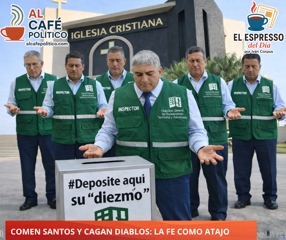 Según los señalamientos, desde una presunta “nómina externa”, David Ortiz operaría de la mano con Gustavo Muñoz, pagando mes con mes un “diezmo” a 14 pastores que no sólo evangelizan, sino que portan chalecos de inspectores o actúan como coyotes con piel de oveja: más rebaño administrativo que vocación divina. El resultado es una vía rápida para trámites que, curiosamente, sólo avanza cuando aparece el “diezmo”; de lo contrario, quedan atorados desde septiembre. Varios de estos personajes ya habrían sido señalados por obtener terrenos, incluso en Hacienda El Rosario, no precisamente para construir un templo.