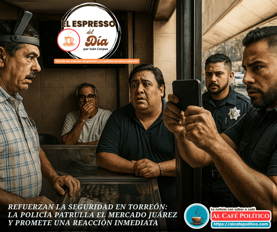 Este lunes, un operativo sorpresa encabezado por el comisario Alfredo Flores, jefe de la Policía de Torreón, asustó a más de uno que dejó a medias su “caldito de res”. El recorrido por el Mercado Juárez, acompañado de personal de Proximidad Social, buscó reforzar la vigilancia, garantizar reacción inmediata y contrarrestar la percepción ciudadana de inseguridad, que en julio de 2025 se mantiene en 44%.