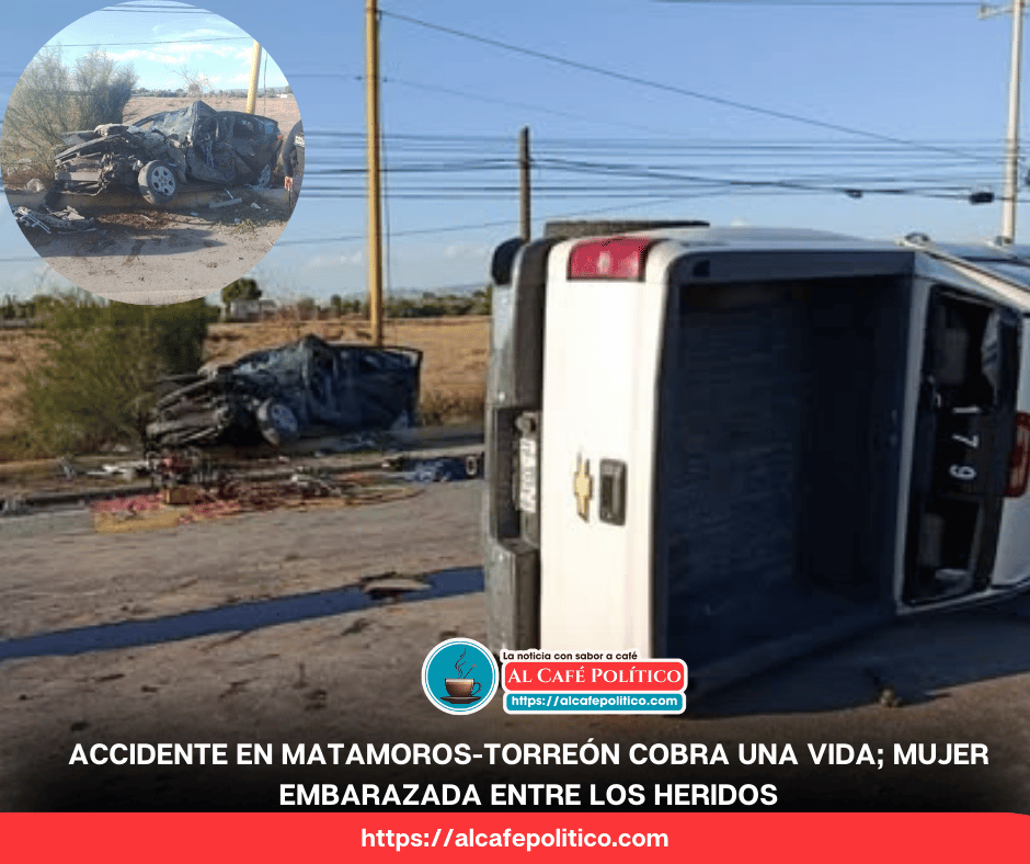 Torreón. – Un aparatoso accidente múltiple sobre la carretera Matamoros–Torreón, justo frente al centro recreativo Wet Laguna, dejó como saldo una persona fallecida y al menos tres lesionados graves, entre ellos una mujer embarazada