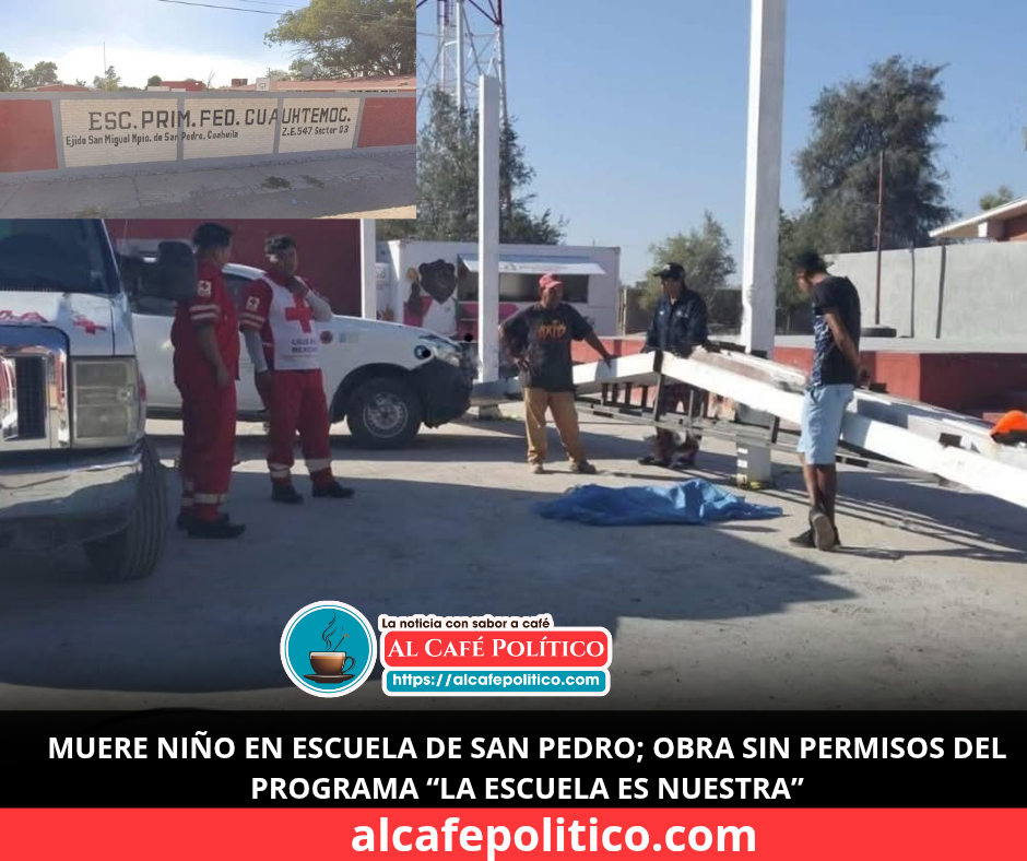 San Pedro,.– Un trágico accidente cobró la vida de un niño de seis años dentro de la primaria Cuauhtémoc del ejido San Miguel, luego de que parte de una techumbre en construcción se desplomara y lo golpeara en la cabeza.