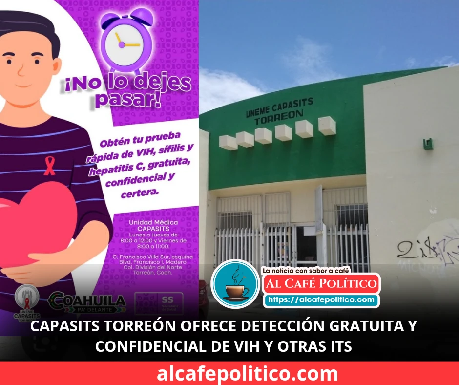 Torreón.-La Secretaría de Salud de Coahuila, a través de la Unidad Médica CAPASITS Torreón, invita a…