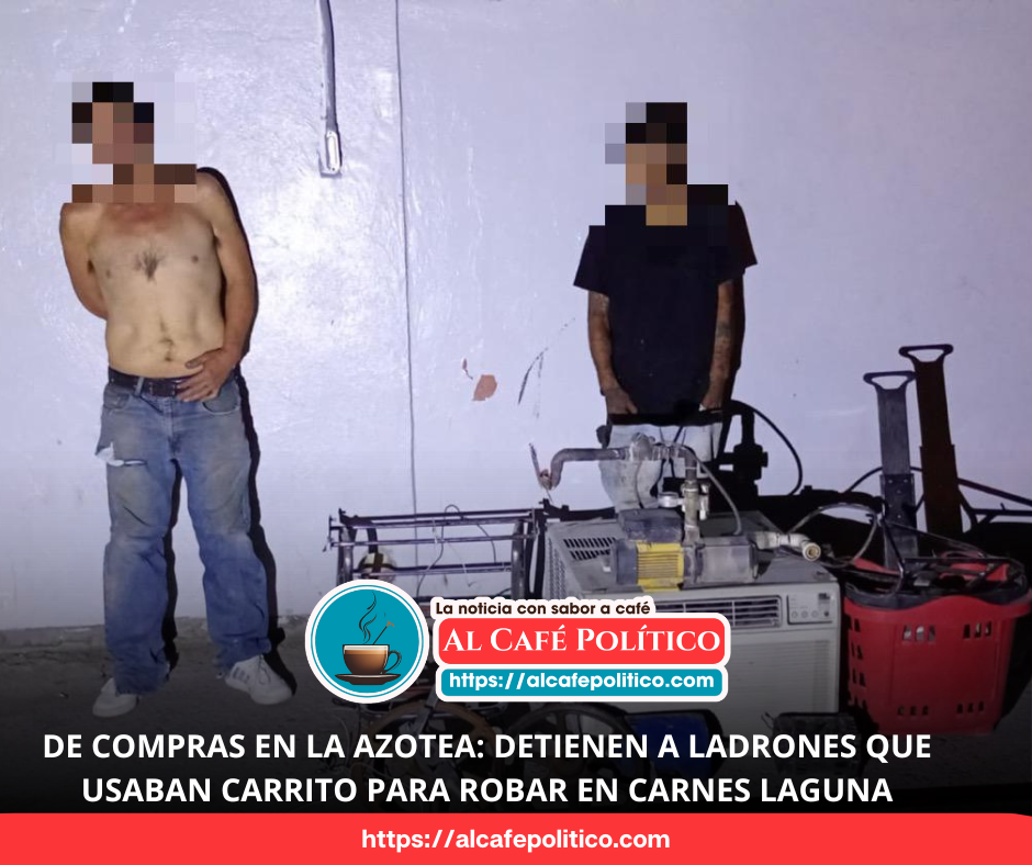 Torreón.- En plena madrugada de este domingo, dos hombres fueron sorprendidos por la Policía Municipal de Torreón robando en el  extinto negocio Carnes Laguna, ubicado en Diagonal Reforma y Ramón Méndez, usando un carrito de supermercado color naranja para sacar los objetos como si estuvieran haciendo sus compras diarias.