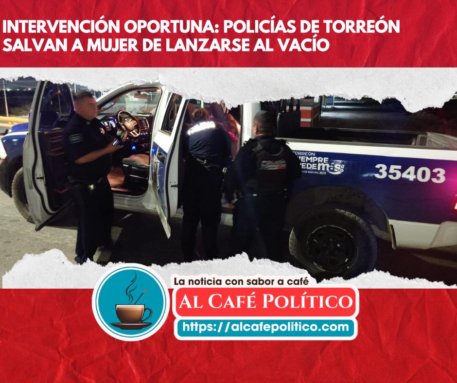 Torreón.- En un acto que destaca la importancia de la atención inmediata y la sensibilidad en situaciones de crisis, elementos de la Dirección de Seguridad Pública Municipal de Torreón auxiliaron a una mujer de 39 años identificada como Anna, quien intentaba arrojarse desde un puente vehicular en la carretera a Mieleras y Paseo del Tecnológico.