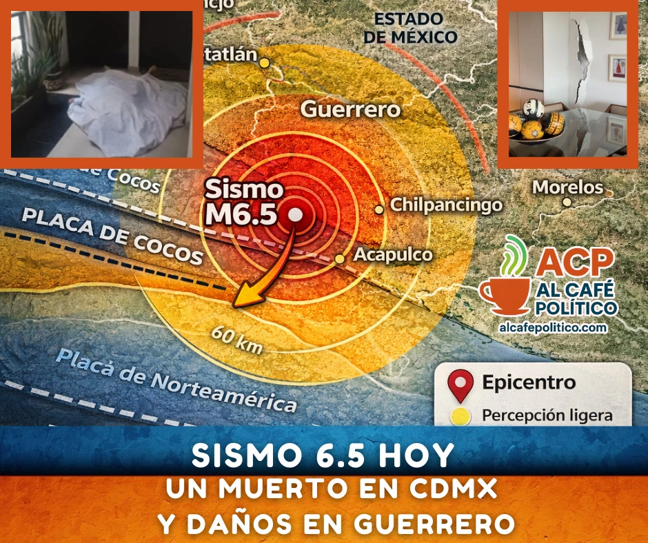 CDMX.– El sismo de magnitud 6.5, con epicentro en Guerrero, registrado a las 7:55 horas, dejó una persona fallecida en la Ciudad de México, confirmaron autoridades. Se trata de un adulto mayor que resbaló en las escaleras durante la evacuación tras activarse la alerta sísmica.