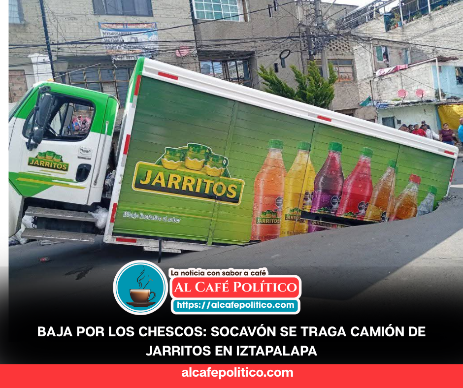 Ciudad de México.- Lo que parecía un reparto cotidiano de refrescos terminó en un accidente insólito: un camión cargado de Jarritos cayó en un socavón en la colonia Renovación, de la alcaldía Iztapalapa.