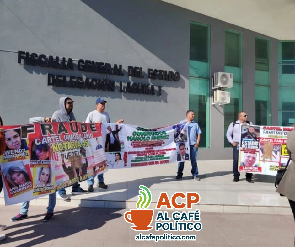 Torreón,.– El caso del presunto “cártel inmobiliario” en La Laguna escala en dos frentes: el judicial y el social. Mientras la Fiscalía General del Estado confirmó la existencia de 12 órdenes de aprehensión por fraudes inmobiliarios, víctimas del caso llevaron la protesta a las calles y bloquearon parcialmente la avenida Juárez, una de las principales vialidades de la ciudad.